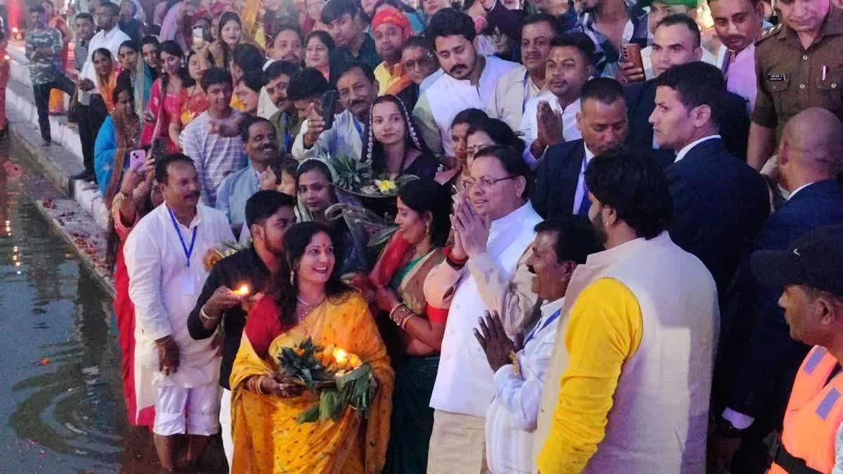 सोमवार को अपने तय कार्यक्रम के अनुसार प्रदेश के मुख्यमंत्री पुष्कर सिंह धामी ने भी संजय रेलवे पार्क पहुंच सूर्य भगवान को अर्घ्य दिया. साथ ही सभी पूर्वांचल समाज की महिलाओं सहित अन्य सभी वर्गों के लोगों को लोक महापर्व छठ की शुभकामनाएं दी. सीएम धामी ने भगवान सूर्य एवं छठ मैया से इस लोक पर्व में सभी की सुख समृद्धि की कामना की.