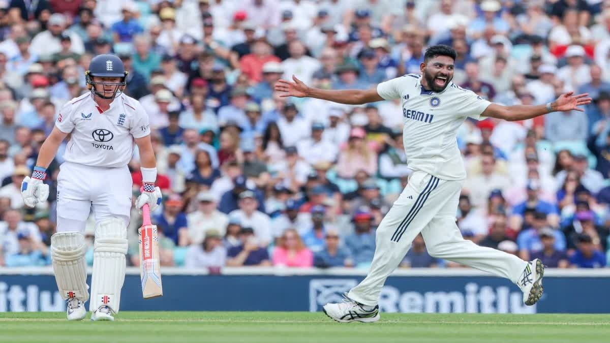 ओवल टेस्ट के पांचवें दिन भारत को जीत के लिए 4 विकेट की जरूरत थी जबकि इंग्लैंड को 35 रनों की जरुरत थी. मैच शुरू होते ही भारत ने 29 रन देकर 4 विकेट निकाल लिए. मैच के हीरो रहे सिराज ने चार में से तीन विकेट झटके जबकि एक विकेट कृष्णा को मिला. पूरे मैच में सिराज ने कुल 9 विकेट लेने में सफल रहे. उन्होंने पहली पारी में भी चार विकेट झटके थे. जबकि प्रसिद्ध कृष्णा ने भी मैच 8 विकेट लेकर भारत की जीत में बड़ी भूमिका निभाई.